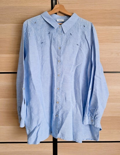 VERKOCHT! Hemd lichtblauw bloemdetail