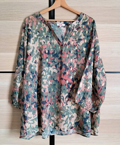 VERKOCHT! Blouse Roze/groen/blauw goud detail